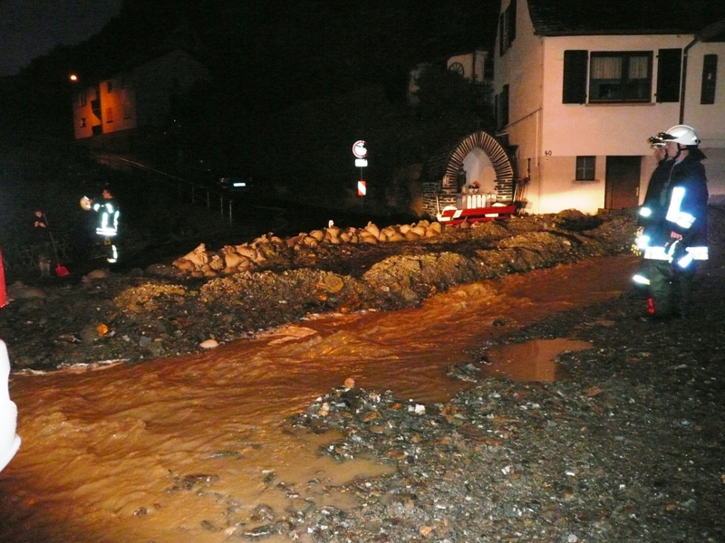 Die Feuerwehren der Stadt Lorch, sowie weiter Kräfte als RLP wurden zu einem Unwetterschaden in Sauerthal alarmiert. Innerhalb einer Woche kam es zum zweiten Mal während des Unwetters zu Überschwemmungen und Schlammlawinen in dem Ort. Mehrere Keller, Garagen und Wohnungen wurden von dem Schlamm und Wasser überflutet. Die Feuerwehren und das THW schichteten mit Sandsäcken einen Wall auf damit das Wasser wieder von der Straße in den Bachlauf fließen konnte. Danach wurden die Keller, Garagen und Häuser leer gepumpt und der Schutt beseitigt.