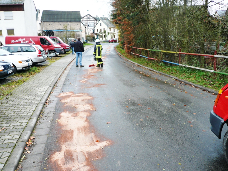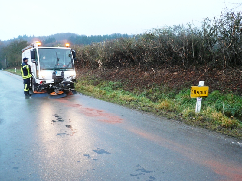 Die Feuerwehren aus Wollmerschied, Ransel, Lorch und Lorchhausen wurden zum Abstreuen einer Ölspur von Wollmerschied bis nach Lorch gerufen. Das Ölbindemittel wurde im Anschluss von der Kehrmaschine ausgenommen.