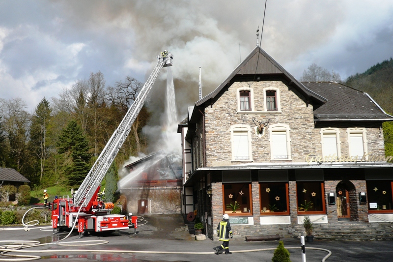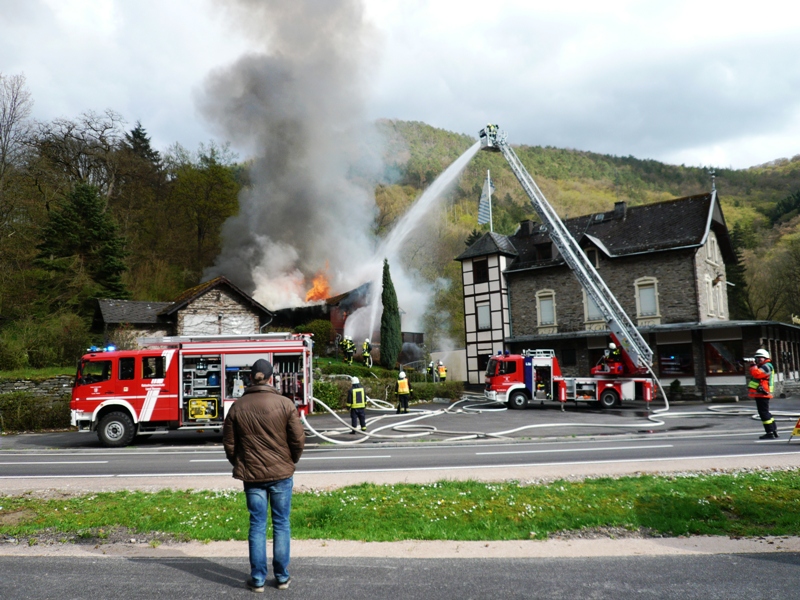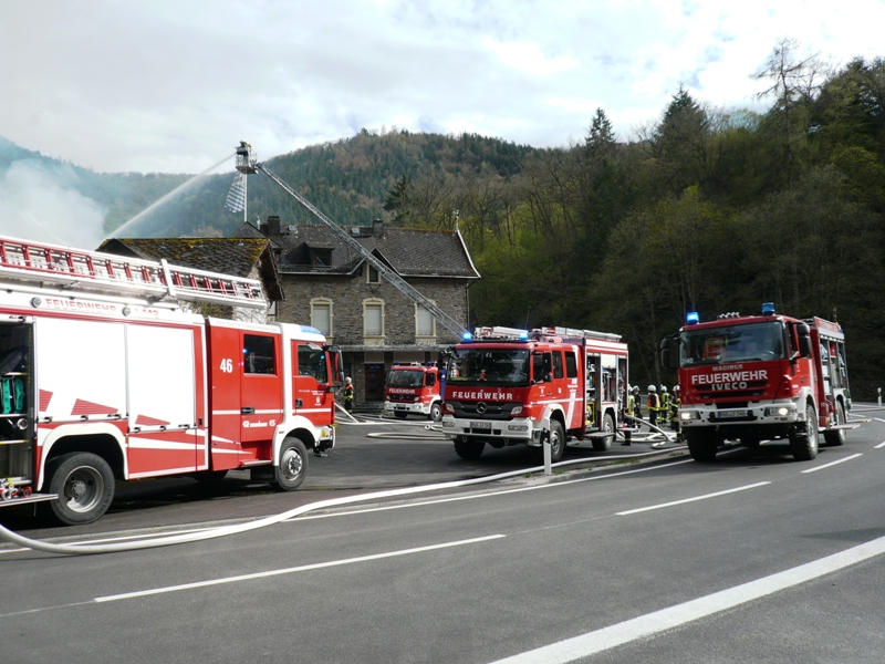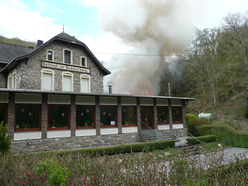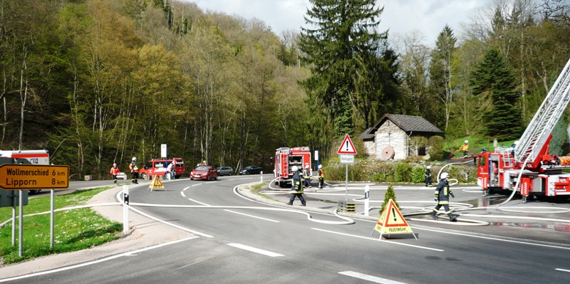 Am Samstag Nachmittag ist die Feuerwehr Wollmerschied mit 12 Einsatzkräften zu einem Wohnhausbrand an der Kammerburg gerufen worden. Das Wohnhaus brannte in voller Ausdehnung und bedingt durch die Holzkonstruktion ist es völlig zerstört worden. Die Feuerwehr Wollmerschied übernahm die Wasserversorgung für die Drehleiter. Mit dieser konnte von oben eine optimale Brandbekämpfung durchgeführt werden. Auch waren 4 Wollmerschieder mit Atemschutz zur Brandbekämpfung im Einsatz.