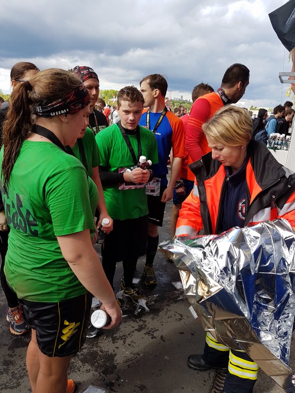 Die durchnässten und frierenden Teilnehmen wurden mit Rettungsdecken versorgt.