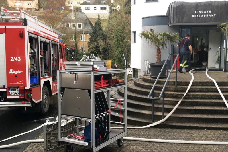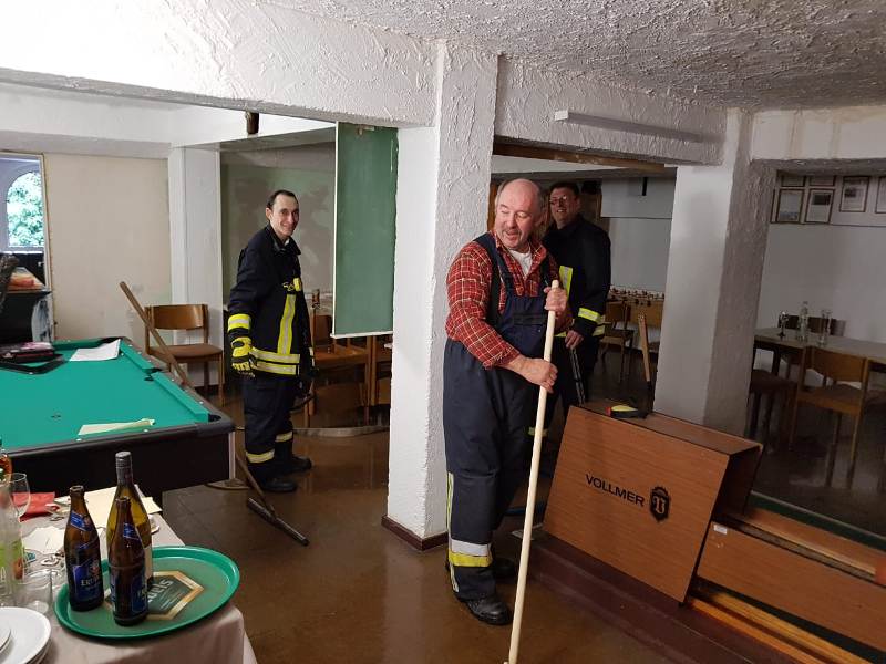 Die Feuerwehr Lorch und Wollmerschied wurde zu einem Wasserschaden in das Bürgerhaus in der Kolpingstraße alarmiert. Im Gastraum unter der Theke kam es vermutlich durch Überhitzung zu einem Kleinbrand der einen Wasserschlauch zum platzen brachte. Das Feuer war dadurch schnell gelöscht, allerdings strömte unbemerkt Wasser aus was im Untergeschoss einen massiven Wasserschaden verursachte. Auch die Kegelbahn wurde stark in Mitleidenschaft gezogen. Bürgermeister Helbing machte sich vor Ort ein Bild der Lage.